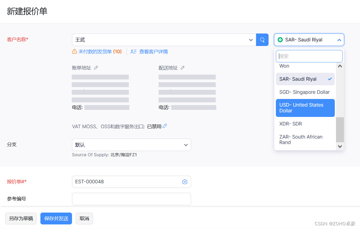 在外贸交易中,汇率波动对外贸企业的利润产生直接影响。Zoho Books内置了实时汇率更新功能,能确保企业在处理国际交易时使用最新的汇率进行核算。系统不仅能自动计算不同货币间的转换金额,而且还可以设置默认汇率,用于记录和结算海外客户的发票和收款,确保财务数据的准确性。