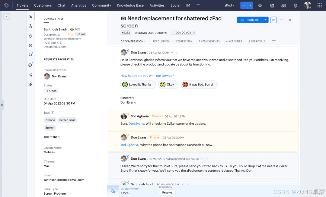 Zoho Desk将所有历史数据成功迁移,坐席可追溯并处理历史工单。