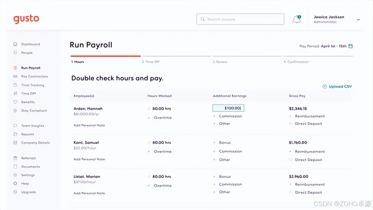 Gusto是一款专注于薪资、福利和合规性的人力资源管理软件,特别适合中小企业。它提供了一体化的薪资处理解决方案,简化了税务和保险管理,通过自动化流程确保了准确性和合规性,减轻了HR部门的负担。