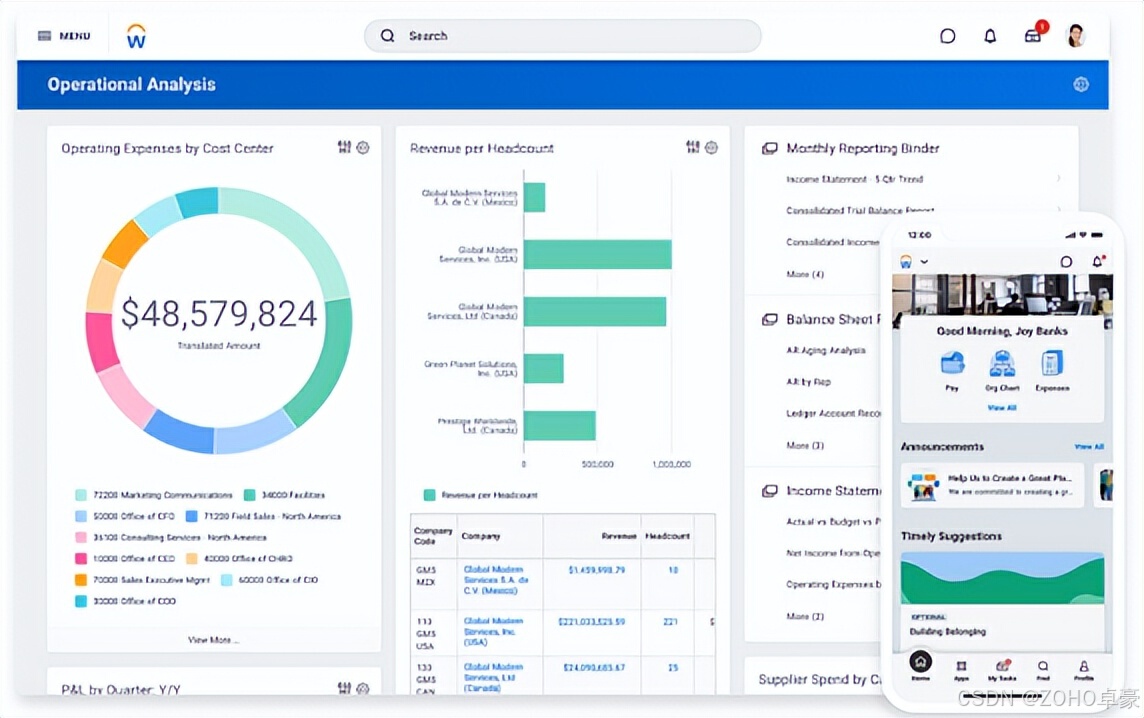 Workday是一款基于云的全方位人力资源管理解决方案,以创新的技术和用户友好的界面著称。它提供了一套集成的模块,涵盖招聘、培训、绩效评估、薪资管理等多个方面,帮助企业实现人力资源管理的全面数字化。Workday的强大之处在于其数据驱动的决策支持,以及与企业现有IT环境的无缝集成能力。