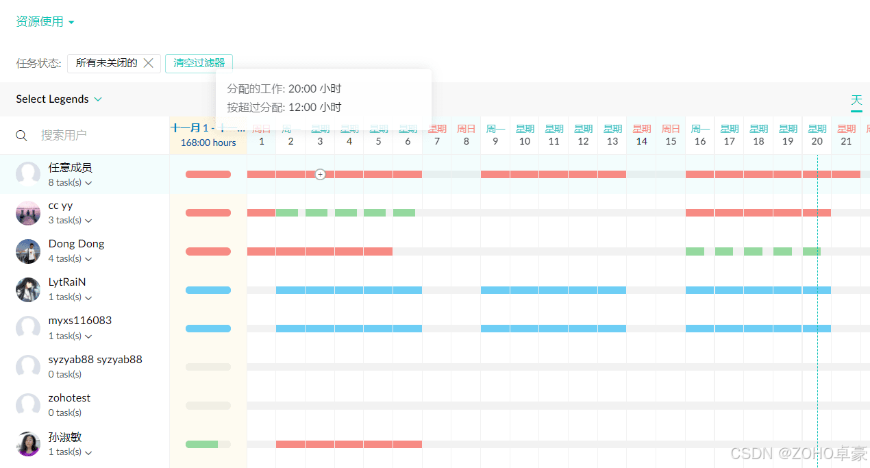 想象一下,一张图表就能展示所有项目的人力资源利用情况,你还需要手动统计吗?当然不用!资源利用图功能,让你告别繁琐的数据整理,一切尽在掌握之中。