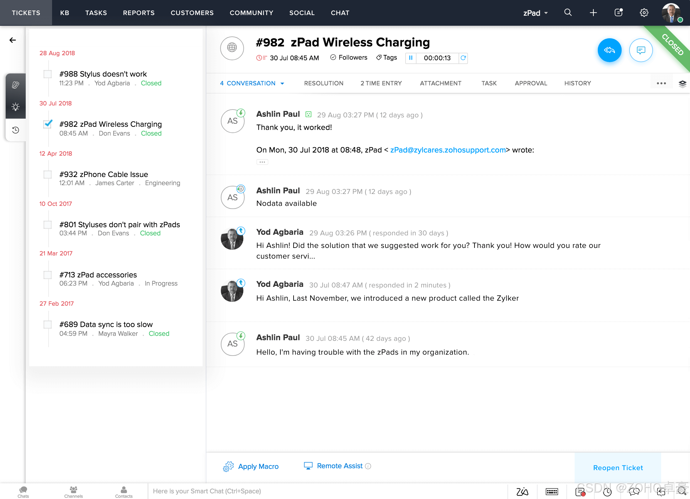 在这些复杂的售后管理场景下,Zoho Desk 是一款致力于提升客户服务效率的工单管理系统,旨在帮助企业有效管理和跟踪客户服务请求。
