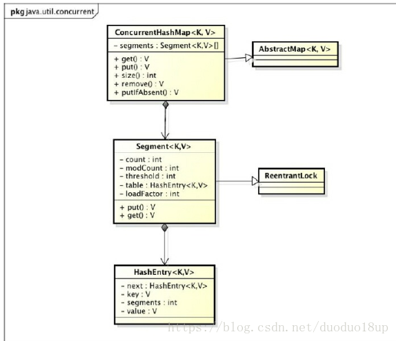 - Java7 利用了ReentrantLock的Segment数组实现,在ConcurrentHashMap里扮演锁的角色。