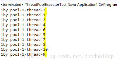 System.out.println(index+"by "+Thread.currentThread().getName());