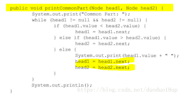 打印两个有序链表的公共部分: