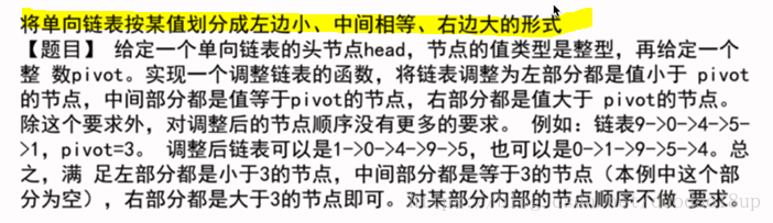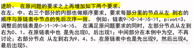思路1 (笔试中适合做的): 直接将链表所有节点放入数组中 -----荷兰国旗问题处理------最后将数组中的节点值依次串起即可