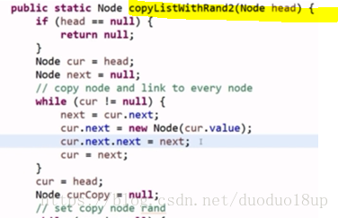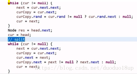 思路2 :不用额外辅助空间的解法 每一个节点的下一节点均是其拷贝节点-----