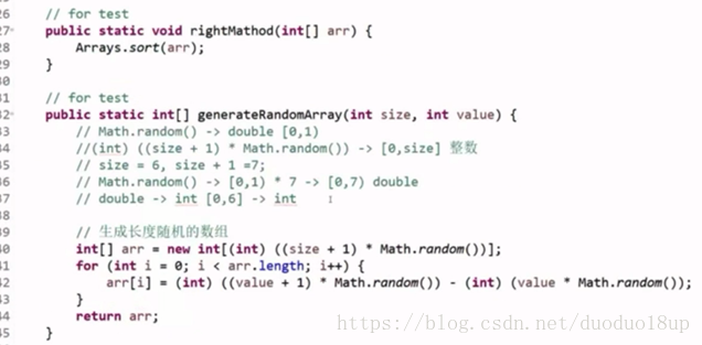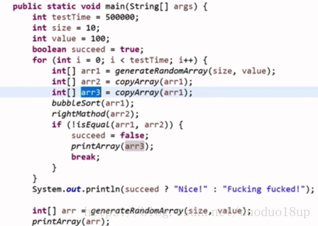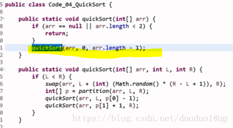 随机选取一个数----跟最后一个数进行交换---概率事件--即使出现偏离事件--但是最终的时间复杂度也是可以接受的