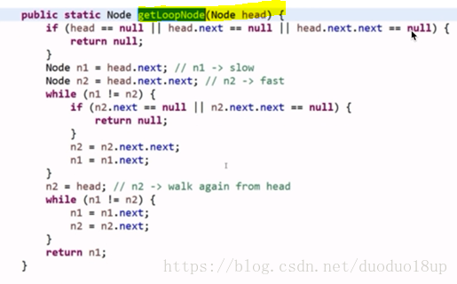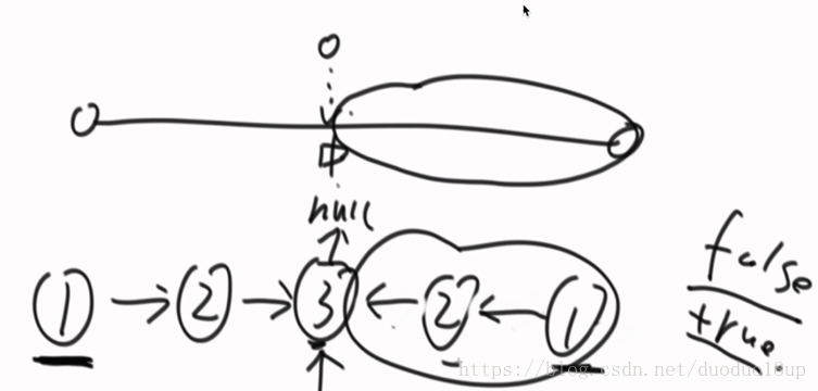 思路2 : 用快慢指针----快指针一次走两步 慢指针一次走一步 两者肯定会在环上相遇 ----若快指针为null则证明无环