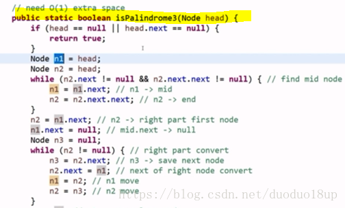 但一定记得在 题目做完 之后 记得把后半部分逆序的链表再调整回来---恢复原来的状态---做题不能破坏原有结构。