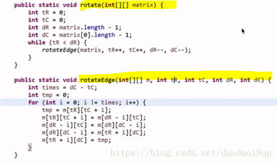 有一个NxN整数矩阵,请编写一个算法,将矩阵顺时针旋转90度。