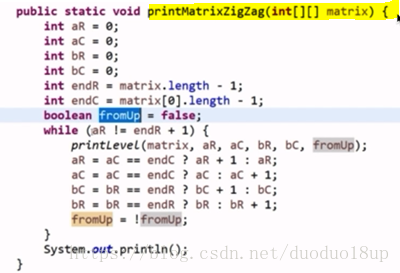 问题转化为------>如何打印出A和B形成的对角线问题~并且用boolean变量标记打印顺序(斜向上或者斜向下)