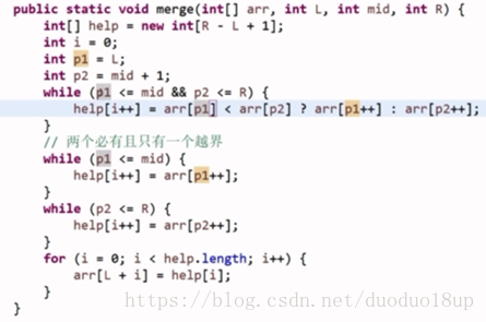 而 归并没有浪费 已经排好的小部分就是有序的 只需要进行已经排好的小部分之间的外排(就是两个指针比较)
