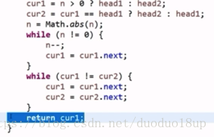 后快指针回到链表开头---和慢指针同步,每次均走一步----则两者一定会在环入口节点处相遇。