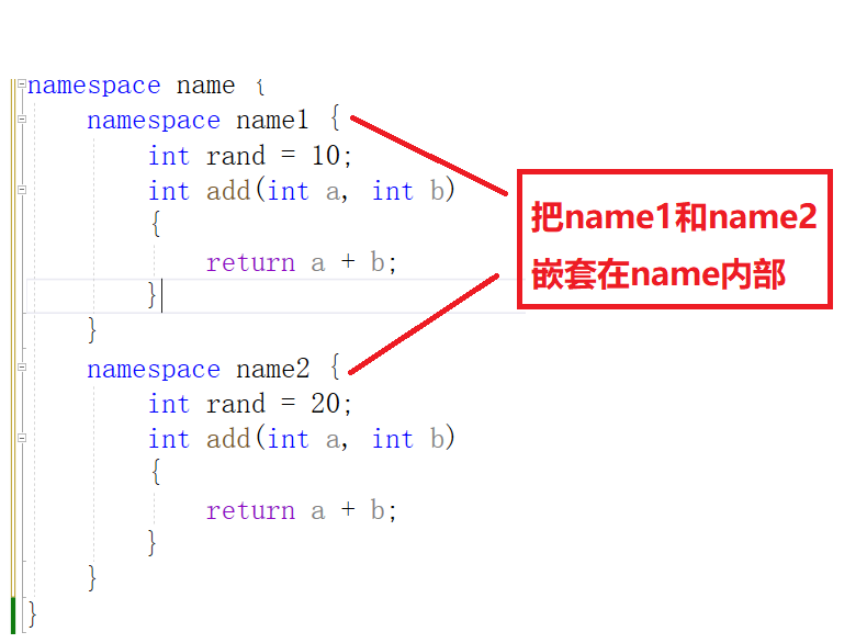 C++中,为了很好的解决这一问题,引入了命名空间这一概念: