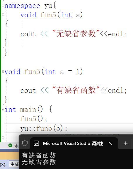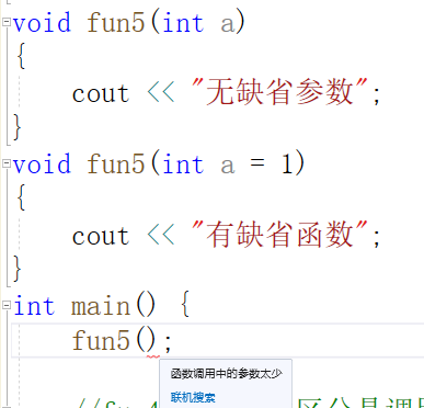 显而易见,答案是不能成功,和上面的原因一样,这样会导致编译器无法区分调用的是有缺省参数的函数还是无缺省参数的函数,而导致出错。