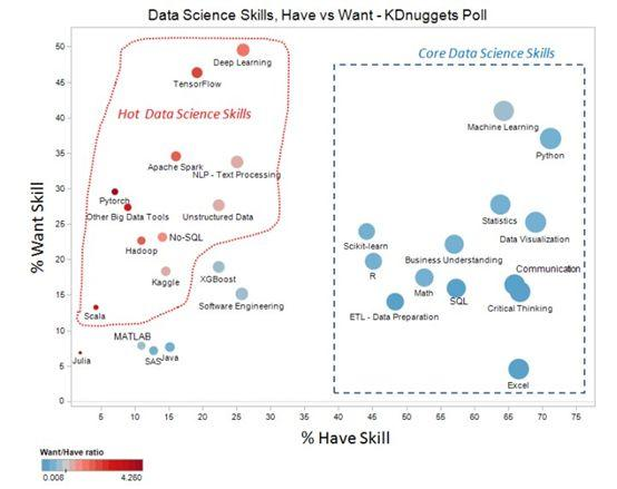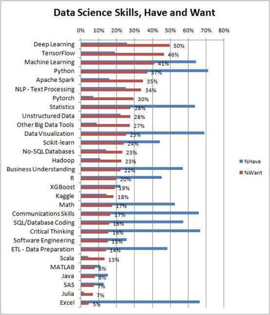 图1:与数据科学相关的技能:已有技能 vs想增加或提高的技能