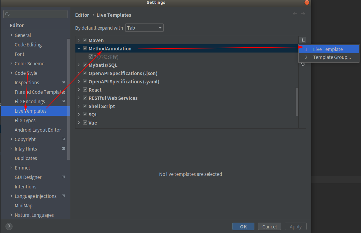 /**+Tab),把右侧的Expand with:改为Enter ,则生成方式为/**+Enter。 -