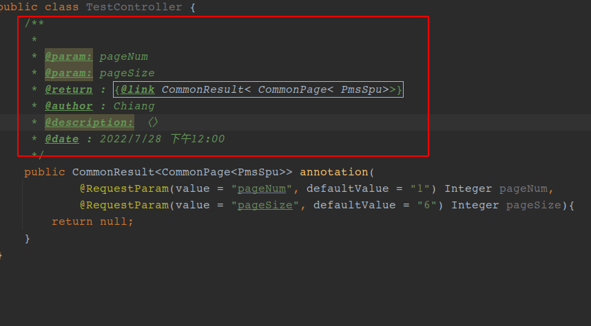 设置成功后点击OK,返回项目新建一个方法,写完入参和返回值以后,在方法上面:
