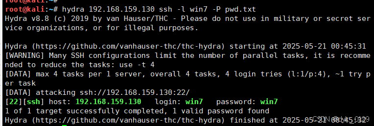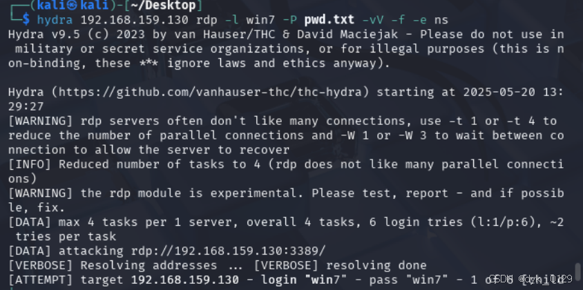 kali2025.1a(kali2019.1报错,不支持rdp):使用hydra爆破密码