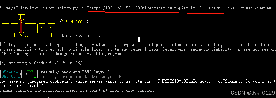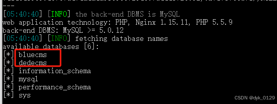 - 使用sqlmap获取数据库,bluecms和dedecms的库都可拿到