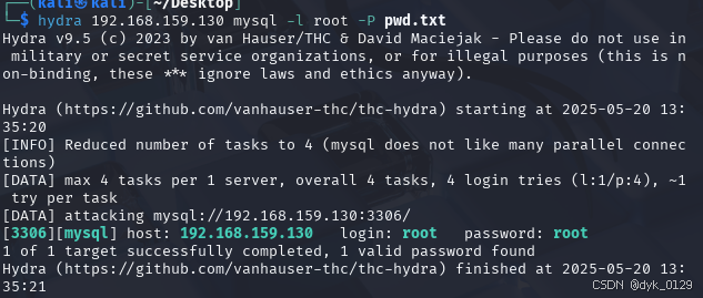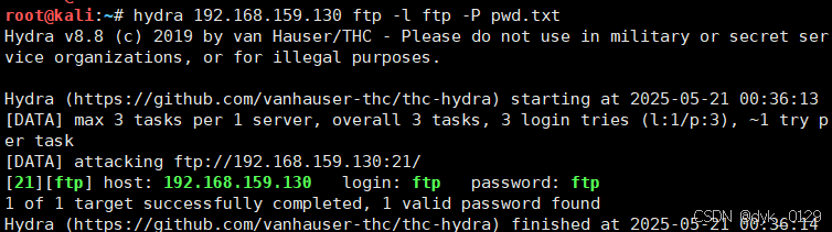 二、暴破:hydra实现对ftp、ssh、rdp、mysql的暴破