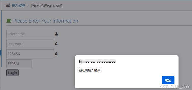 输入错误验证码:提示验证码错误,说明验证码功能是有效的(不是摆设)