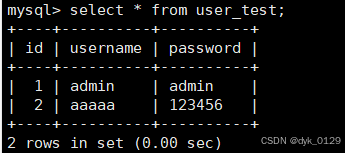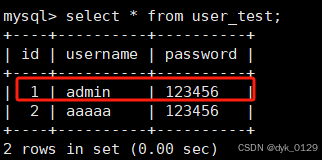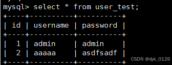 查看数据库(数据库账号:root/toor),查看webug库的user_test表数据