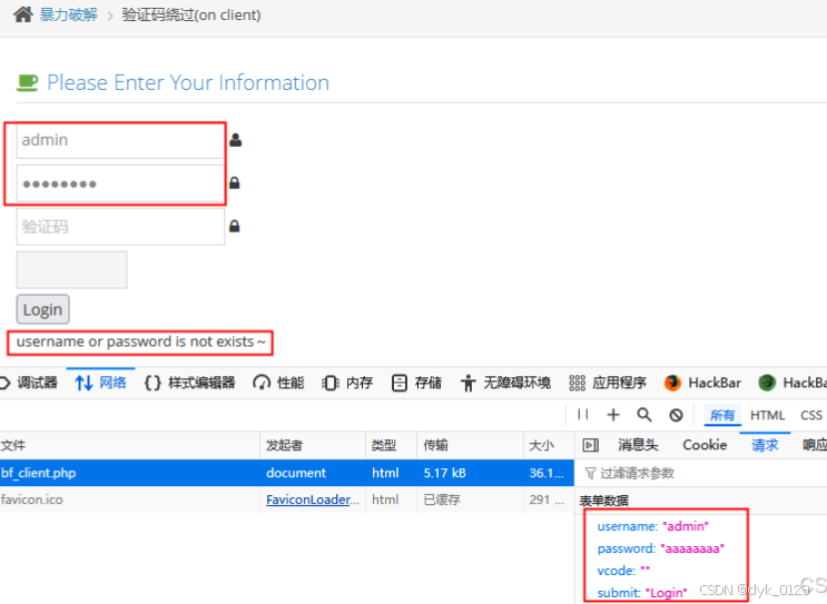 - 输入账号、密码,不输验证码,可正常提交到服务器端,且提示信息跟验证码无关