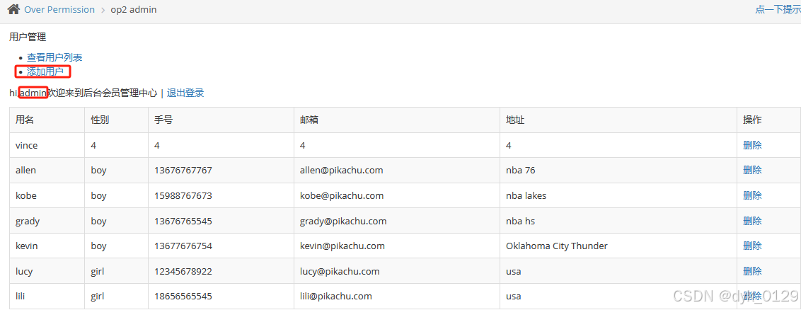 - 谷歌登录pikachu(普通账号):不应该有添加用户权限