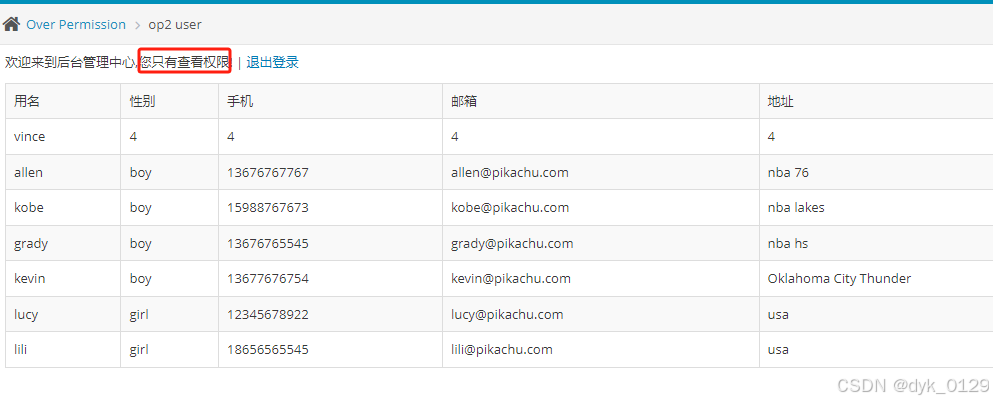 垂直越权概念:使用权限低的用户可以访问到权限较高的用户