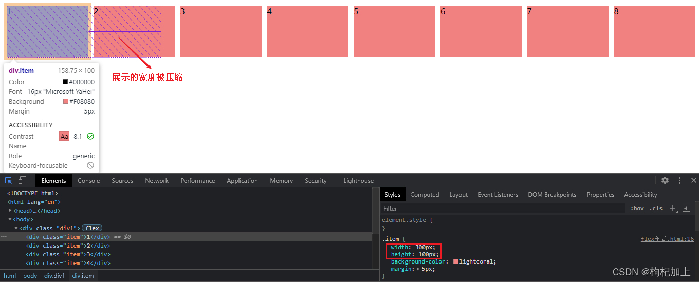 定义了项目的缩小比例,默认为1,即如果空间不足,该项目将缩小。如果所有项目的flex-shrink属性都为1,当空间不足时,都将等比例缩小。如果一个项目的flex-shrink属性为0,其他项目都为1,则空间不足时,前者不缩小。负值对该属性无效。