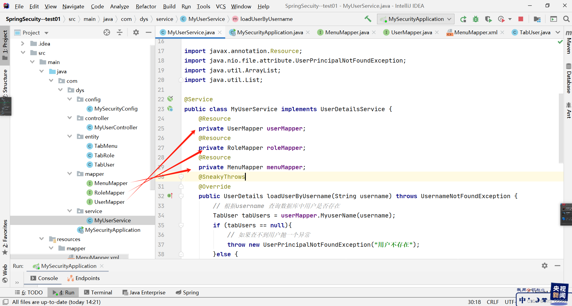 这一层相对于我发布的SpringSecurity(二) 没做任何改变, 这一层写好一次之后在学习前后端分离前使用的时候几乎不用做改变
