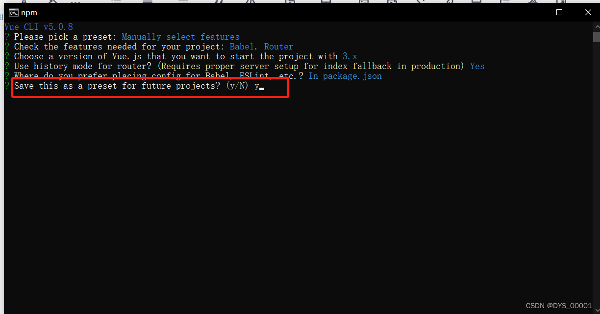 这一步是说明是否要保存模版如果保存了需要像下面第二张图片一样起个名字 输入y是需要保存模版 输入n是不需要保存模版 选择哪一个都可以