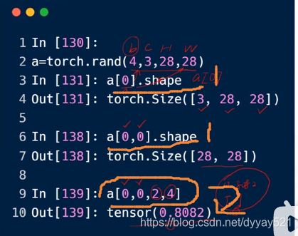 首先我们来看PyTorch的索引问题,就和python语言一样,正常能用脑子想出来的逻辑:
