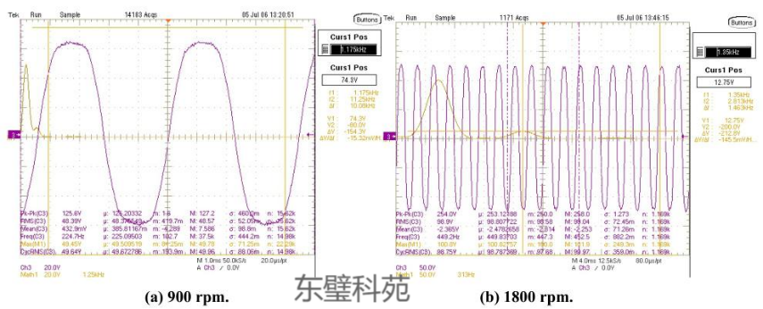 转速从900 rpm升至1800 rpm时,BEMF波形周期数增加,频率翻倍;