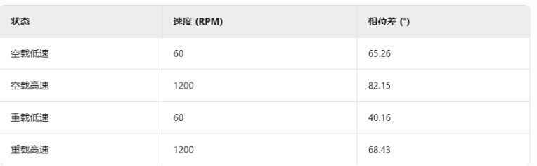 高速运行导致BEMF与电流相位差增大(感性负载相位滞后加剧),而重载会使相位差减小;