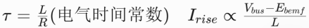 步进电机在高速时,(Vbus−Ebemf) 电压裕量减小,导致电流上升率下降,换向延迟,动态响应变慢 。