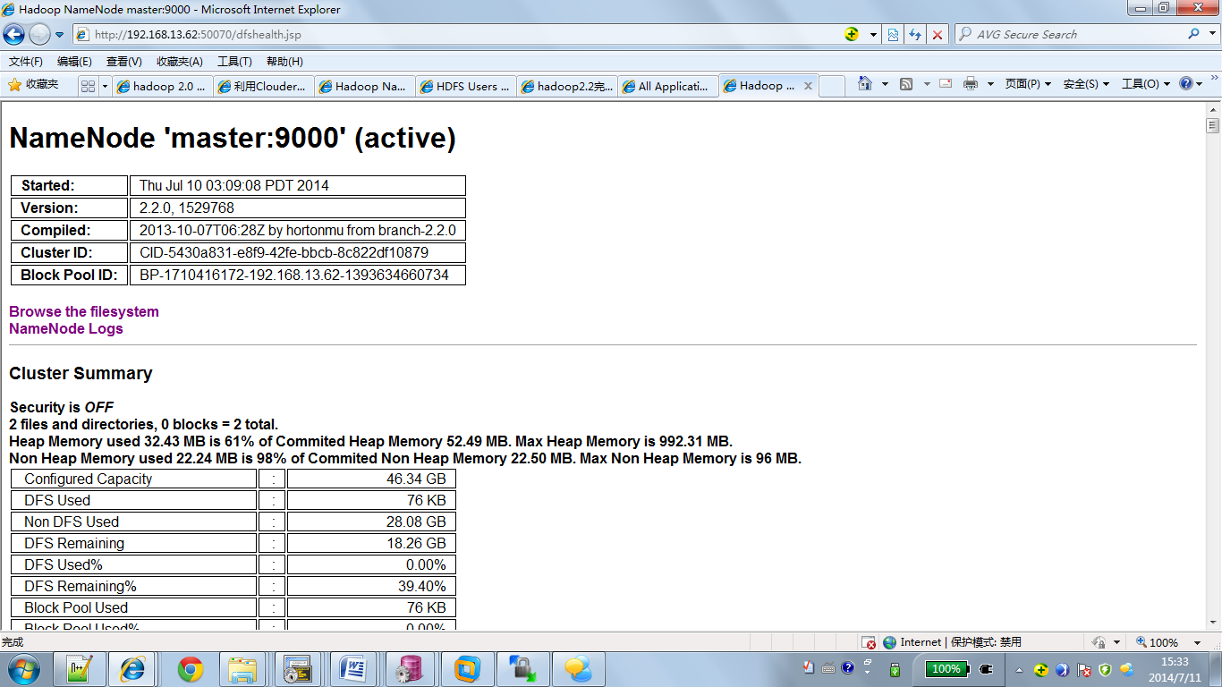 3) http://192.168.13.62:50070/dfshealth.jsp 查看hdfs节点运行状态