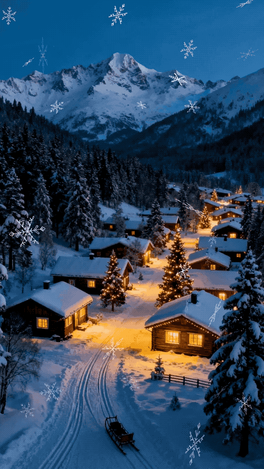 同样是由 E2 编辑器特别设计的 SVG 氛围感特效,这里的雪花造型均为矢量路径且造型更具象,会产生翻飞旋转的特效: