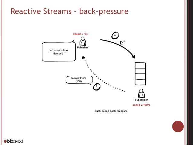 - 背压(Backpressure)支持:简单来说,背压就是一种反馈机制。在一般的Push模型中,发布者既不知道也不关心订阅者的处理速度,当数据的发布速度超过处理速度时,需要订阅者自己决定是缓存还是丢弃。如果使用RP,决定权就交回给发布者,订阅者只需要根据自己的处理能力问发布者请求相应数量的数据。你可能会问这不就是Pull模型吗?其实是不同的。在Pull模型中,订阅者每次处理完数据,都要重新发起一次请求拉取新的数据,而使用背压,订阅者只需要发起一次请求,就能连续不断的重复请求数据。