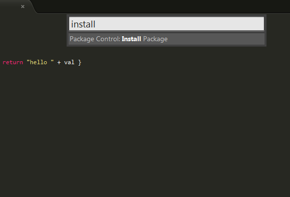 5.现在安装GoSublime插件了,按住Ctrl+Shilft+p会弹出一个对话框输入install回车弹出一个安装包的对话框