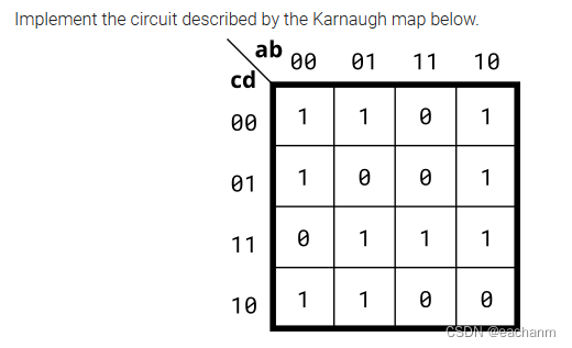 该模块定义了一个名为moduletop_module的Verilog模块,它接收四个输入(inputa,inputb,inputc,inputd)并产生一个输出(outputout)。输出out是通过一系列逻辑非(~)、与(&)和或(|)操作计算得出的,具体逻辑表达式为:out=~a&~d|~b&~c|~a&b&c|a&c&d,展示了数字逻辑中的组合逻辑设计。