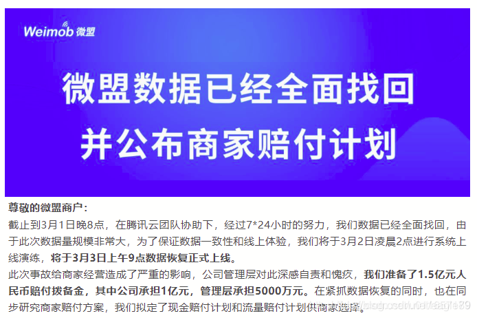 不管你什么架构,一切都是为数据服务的,数据是一个企业最核心的价值。不过出现问题的话,数据一旦被删除,每过一秒,都将对企业造成巨大的损失。最近,还真的发生了一起删库跑路事件,微盟7*24小时紧急恢复数据,商家赔付1.5亿。