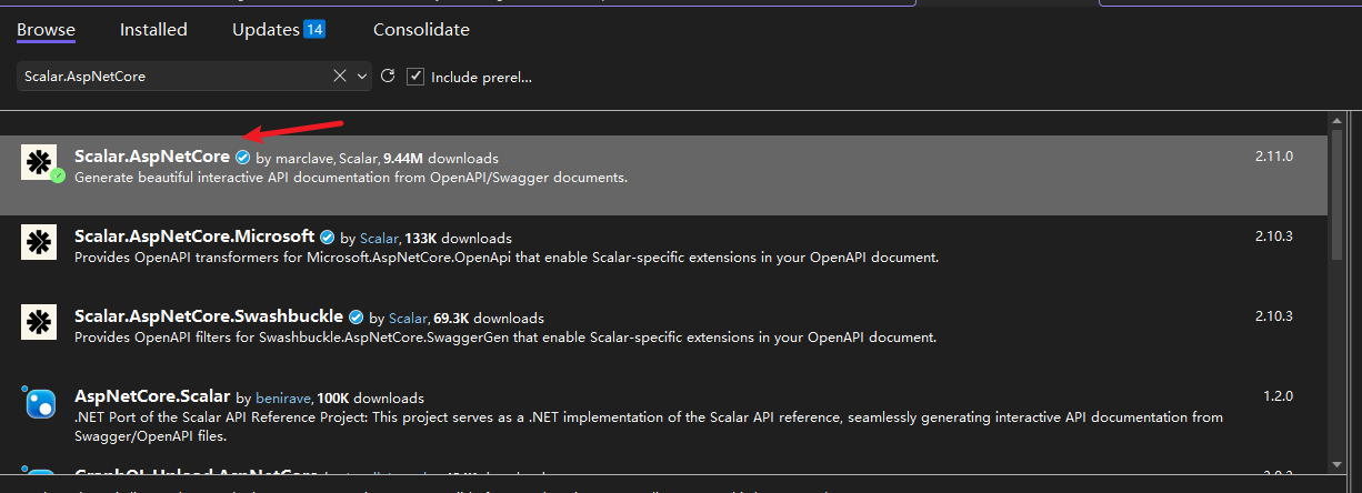 1.首先在nu.get中安装scalar.aspnetcore
