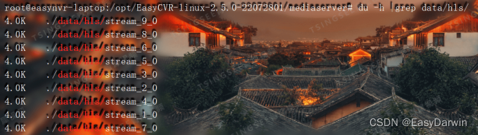 面对这一情况,技术人员遂开始对EasyCVR程序目录进行排查。他们发现在/data/hls目录下保存了大量的切片文件。进一步询问用户是否进行了录像配置,用户坦言并未配置录像功能,只是采用了hls流集成。根据这一信息,技术人员立即意识到了问题的根源:使用hls流会生成切片文件,并且每个切片会保存一个小时。由于用户使用了大量通道并且集成时取的是hls流,导致切片文件占满了磁盘空间。