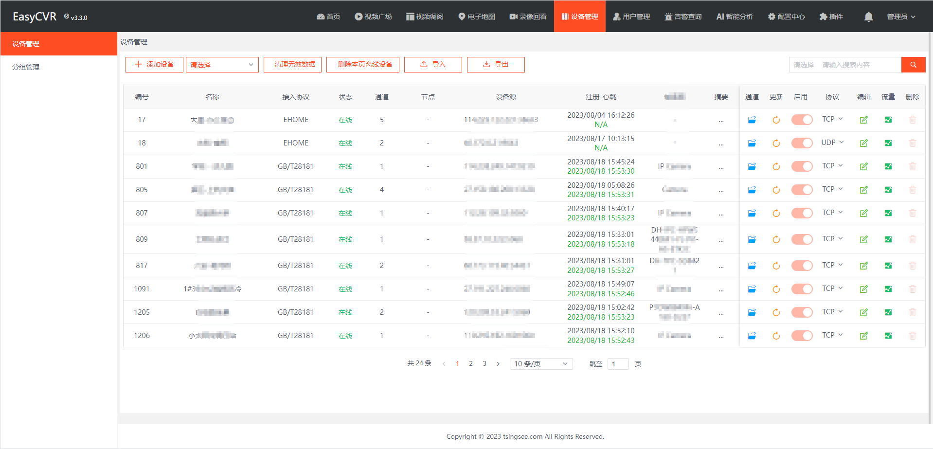 EasyCVR是一个功能强大的视频平台,能够在复杂的网络环境中统一汇聚、整合和集中管理各种类型的前端监控设备。支持的协议包括国标GB/T28181、RTMP、RTSP/Onvif等以及海康大华的私有协议与SDK。平台提供直播、录像、告警、级联和对讲等视频功能。