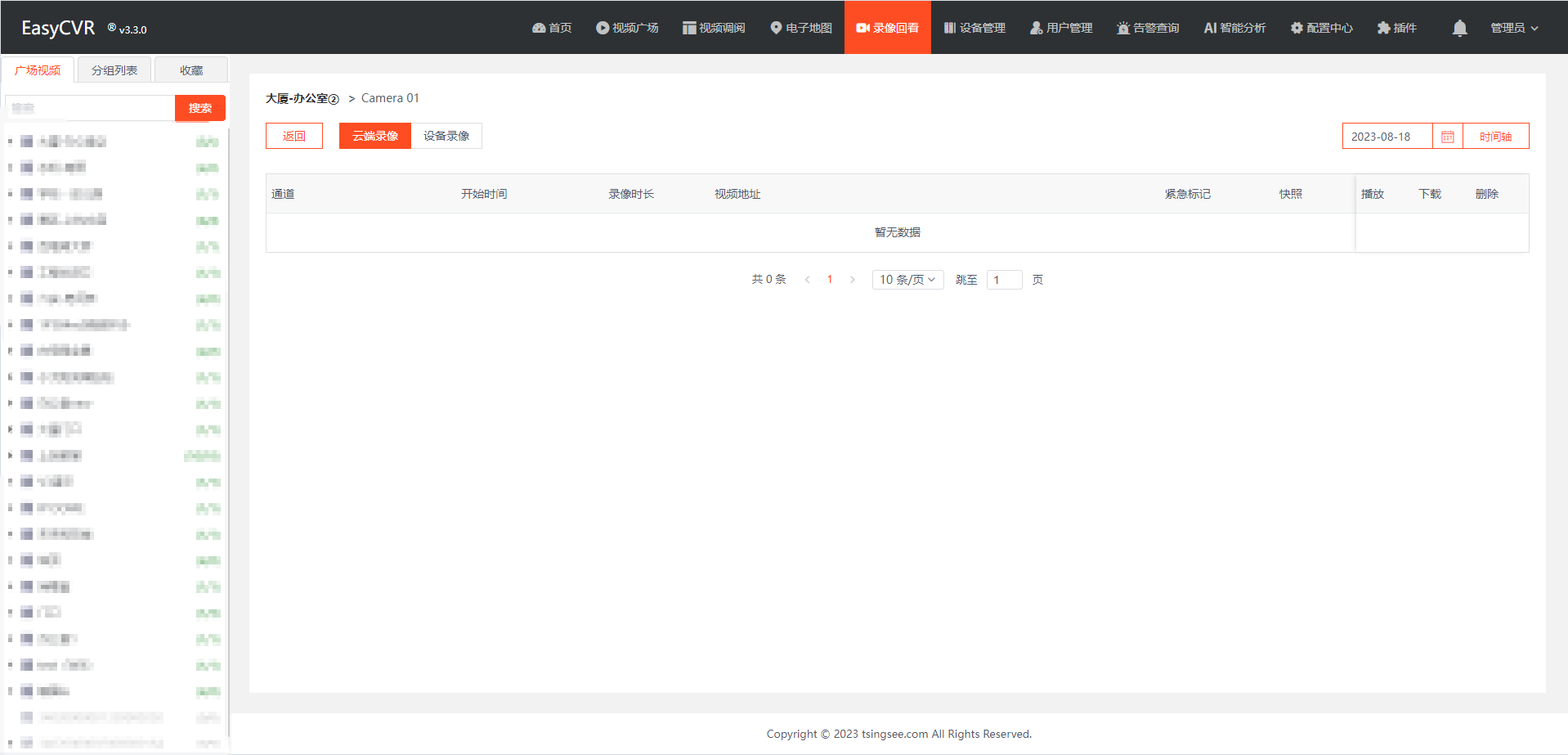 EasyCVR是一款视频集中存储、云存储和视频监控管理平台,它可以在复杂的网络环境下,将各类分散的视频资源统一汇聚、整合和集中管理。通过EasyCVR平台,用户可以进行视频资源的鉴权管理、按需调阅、全网分发和智能分析等操作。该平台已广泛应用于工地、工厂、园区、楼宇、校园、仓储等多种场景。EasyCVR平台还具备AI智能和大数据视频分析功能,可以实现对视频内容的智能分析和处理。如果您对EasyCVR平台感兴趣,可以前往演示平台进行体验,或者进行部署和测试。