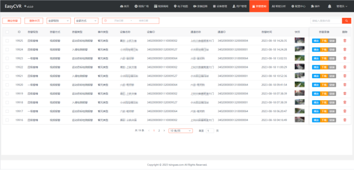 TSINGSEE的智能视频监控/视频云存储/集中存储/视频汇聚平台EasyCVR具备强大的视频融合汇聚能力。作为一款安防视频监控综合管理平台,EasyCVR支持多种协议接入和多格式视频流分发。它能够处理海量的视频汇聚管理,并广泛应用于各种场景,例如城市的“一网统管”建设、智慧工地的风险预警、智慧工厂的安全生产可视化监管以及校园视频大数据的综合管理等。如果您对EasyCVR感兴趣,可以前往我们的演示平台进行体验或者自行部署测试。在演示平台上,您可以亲自体验EasyCVR的各项功能和优势。无论是在哪个领域,EasyCVR都能为您提供强大的视频管理和监控解决方案。