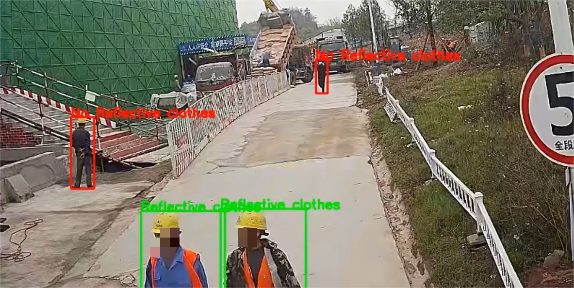 其次,该平台还具备识别反光背心佩戴情况的能力。反光背心是工地上常见的安全防护装备,能够提高工人在夜间或低光环境下的可见性。羚通视频智能分析平台能够准确识别工人是否佩戴了反光背心,进一步提高工地的安全性。